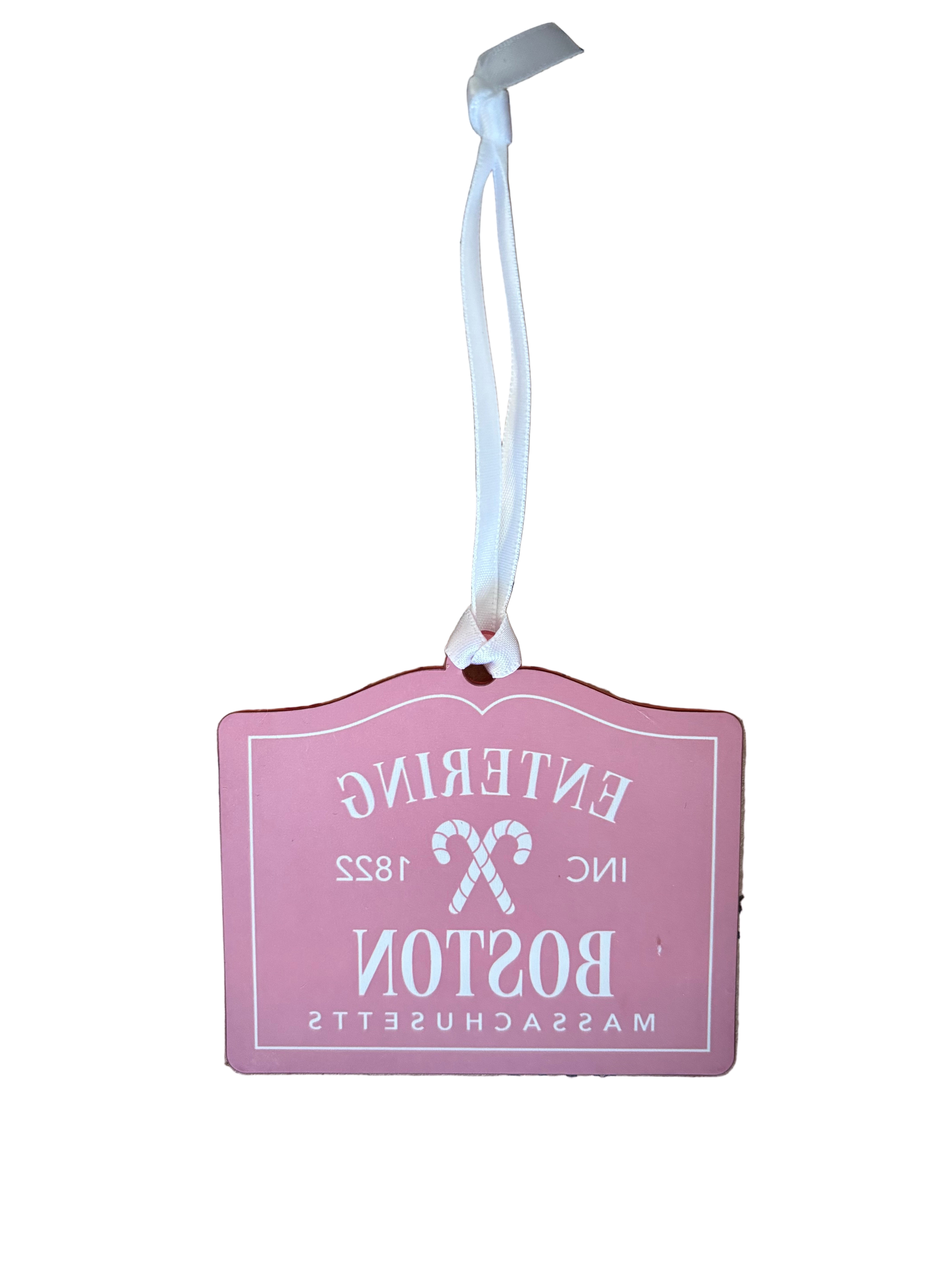 These Entering Boston acrylic ornaments are made of durable, lightweight, shatterproof clear acrylic, it looks just like glass, but it won't break if you accidentally bump it off your Christmas Tree. It’s slightly translucent so it glows beautifully in the cheerful holiday lights.